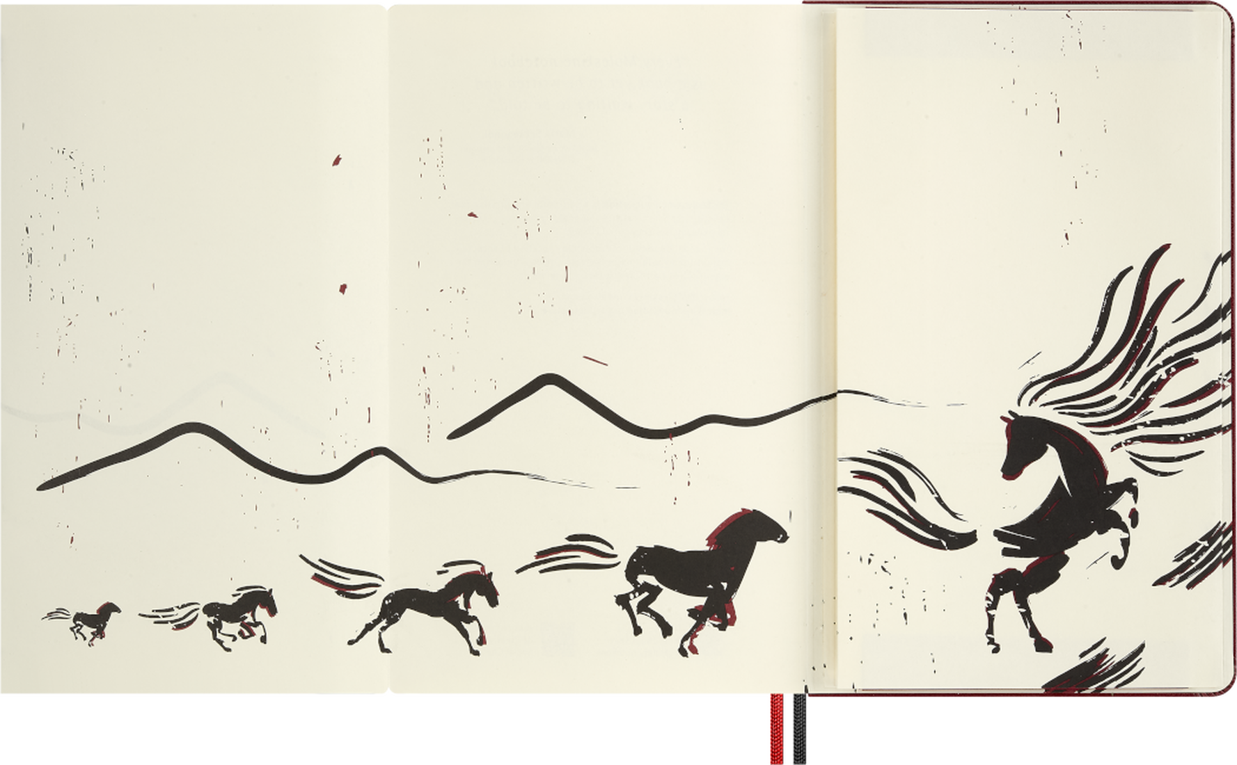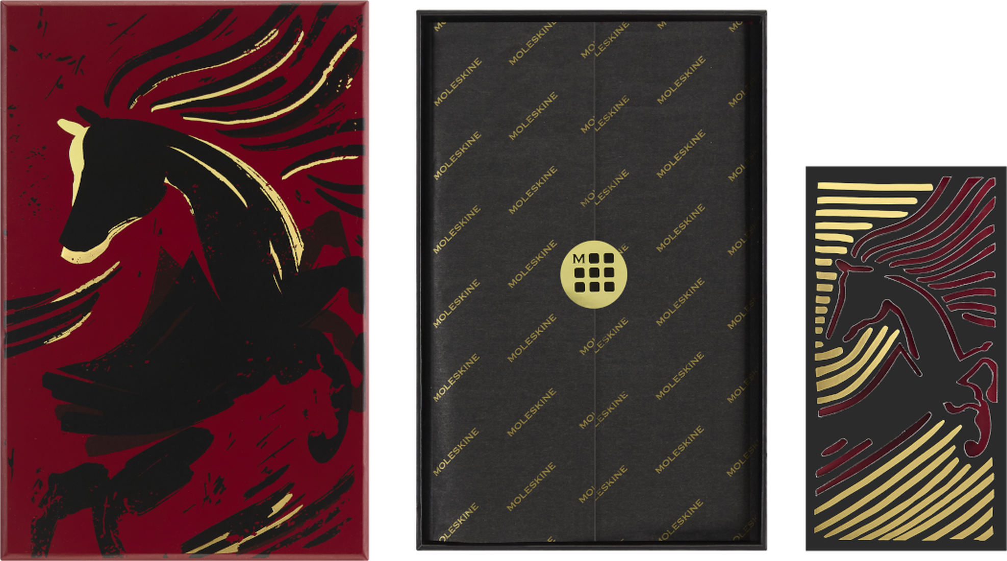 Dodatki w zestawie, które pozwolą Ci spersonalizować notatki: dwie koperty i naklejki na szczęście, zakładka, dwie specjalne kartki z życzeniami ozdobione wyciętymi motywami koni