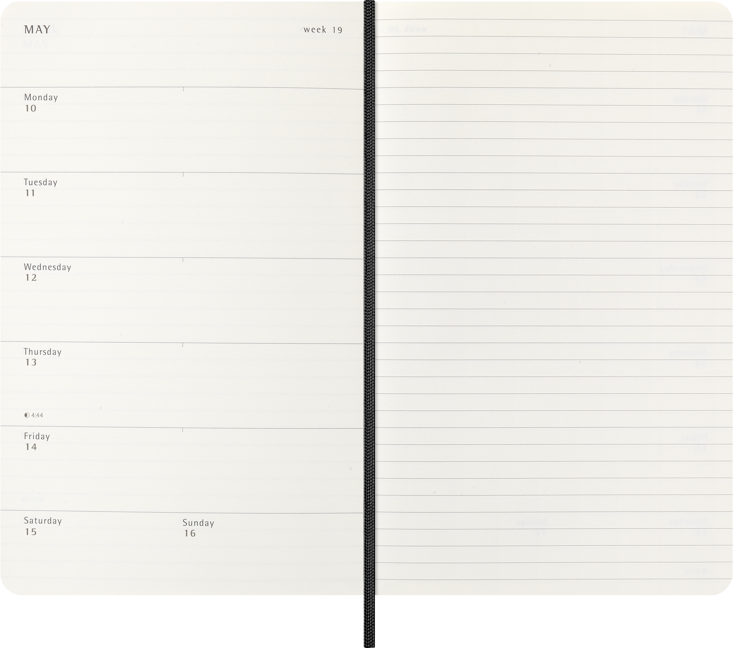 - Układ stron: tydzień na jednej stronie, druga na notatki