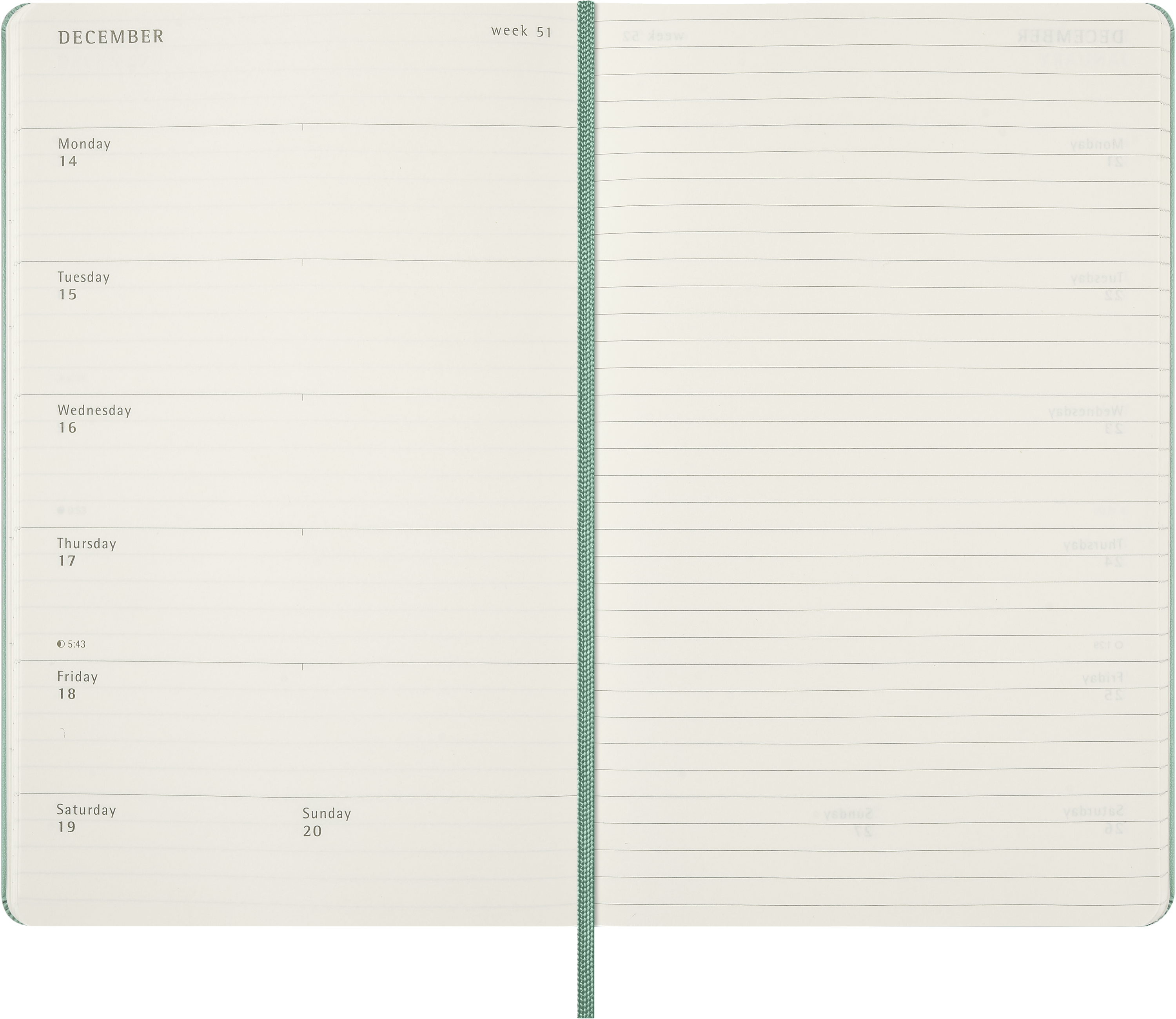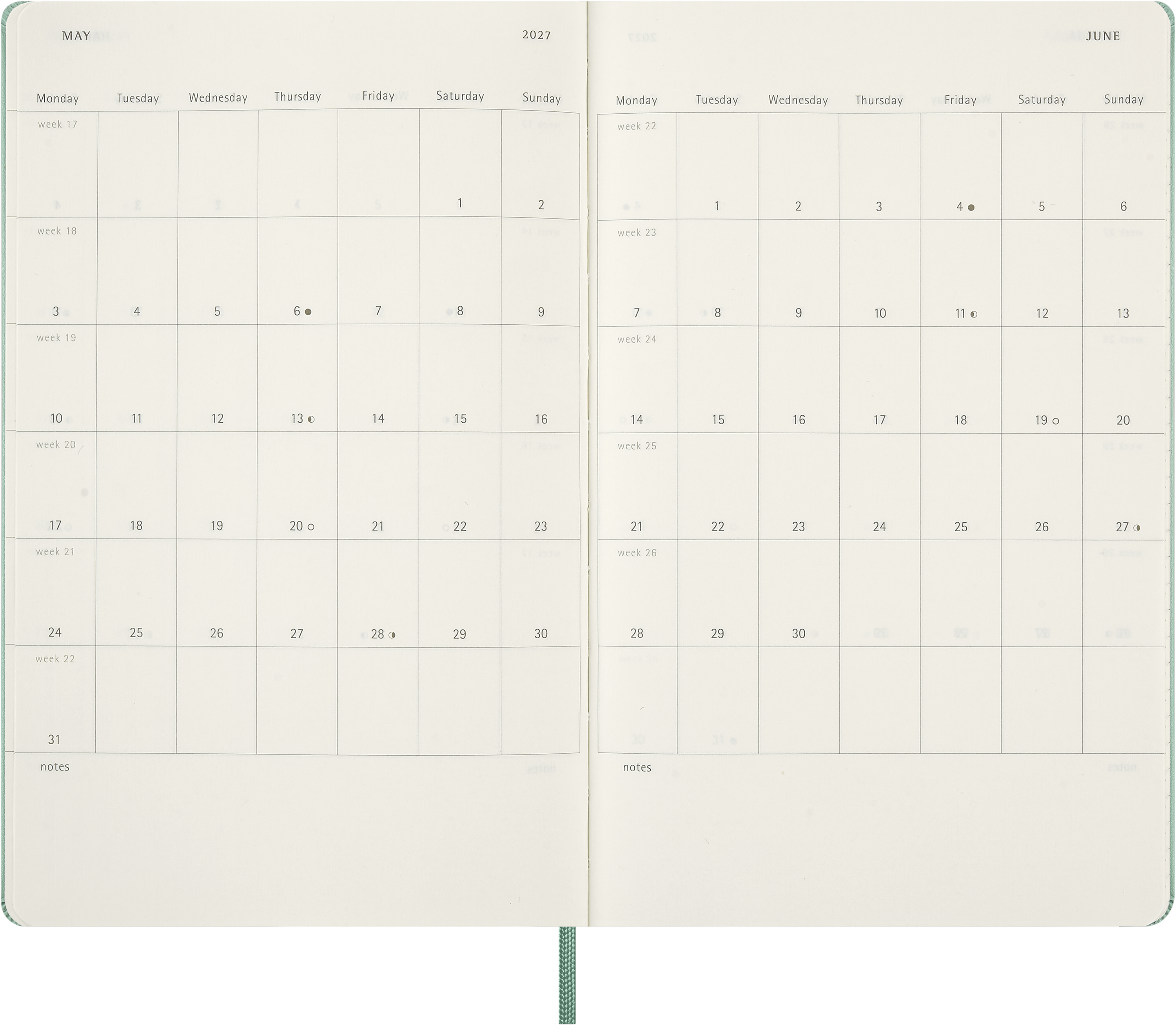 MOLESKINE kalendarz 2026/2027 LARGE MIĘTOWY WEEKLY HARD