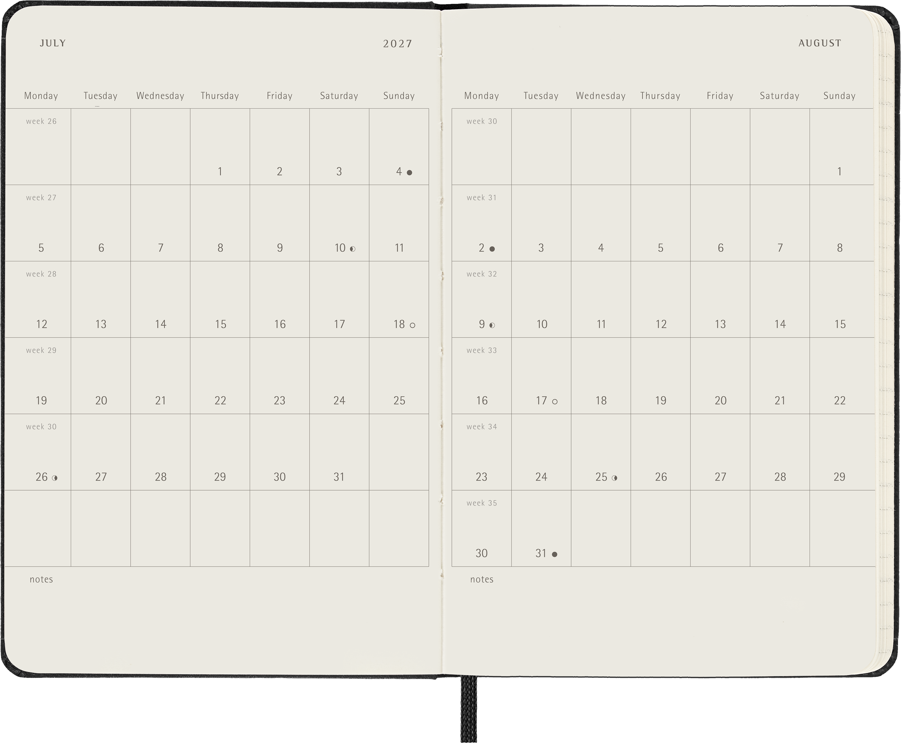MOLESKINE kalendarz 2026/2027 POCKET CZARNY HORIZONTAL HARD