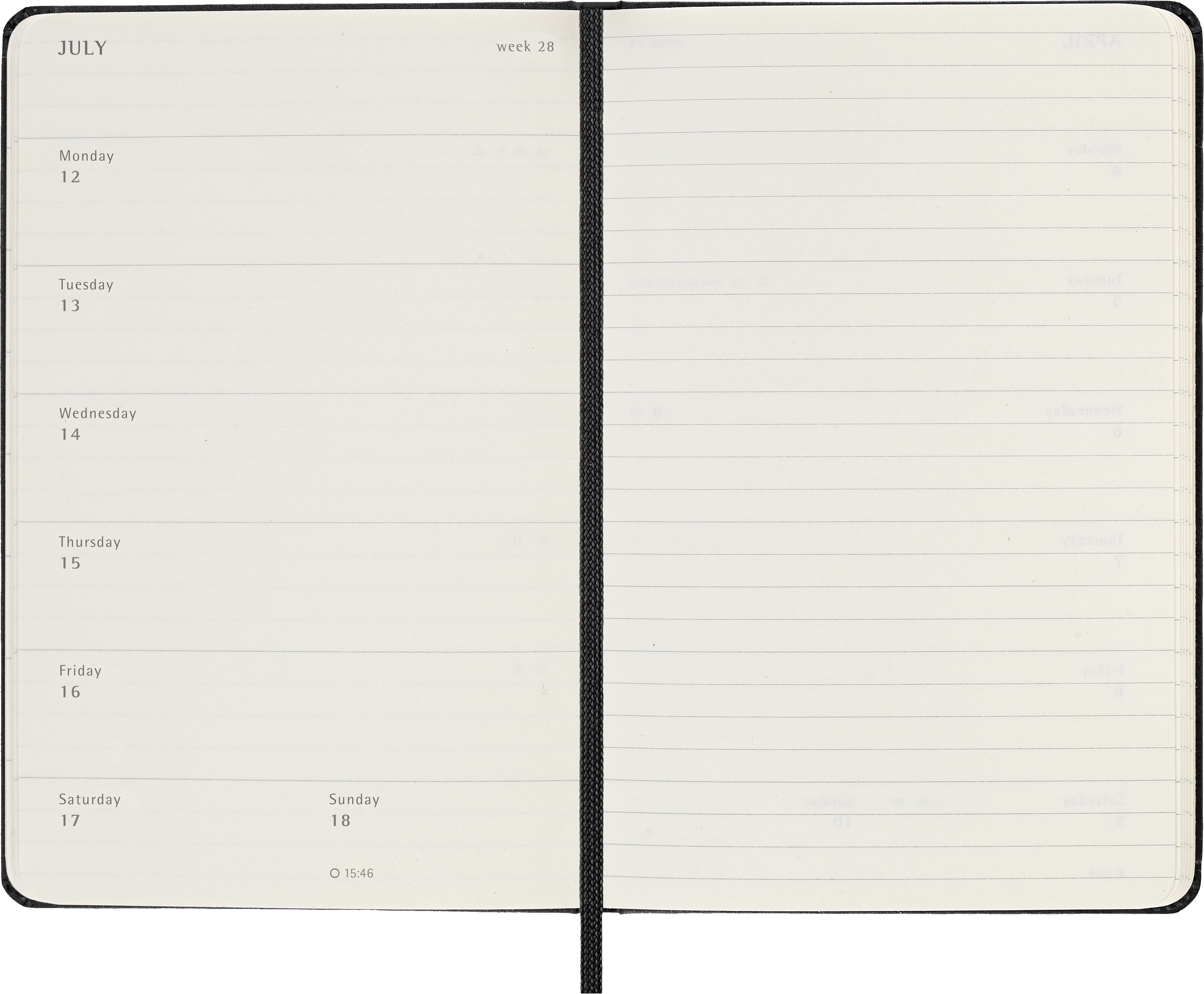 - Układ stron: tydzień na jednej stronie, druga na notatki