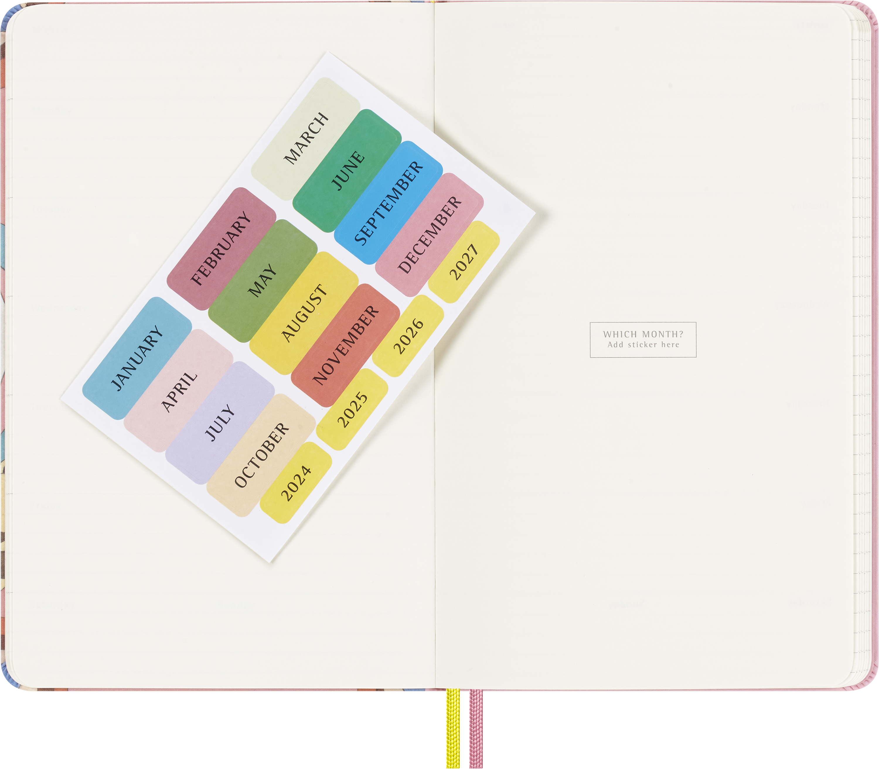 - Naklejki do personalizacji planów, w tym naklejki roczne na grzbiet i naklejki miesięczne na przegrody