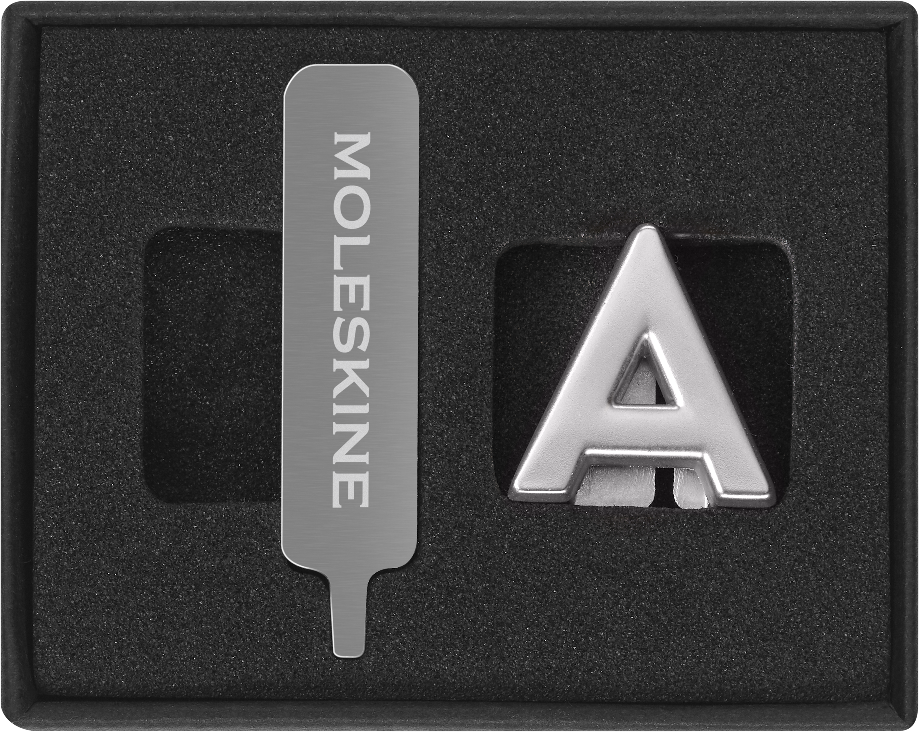 Srebrna przypinka Moleskine do notatnika kalendarza litera A