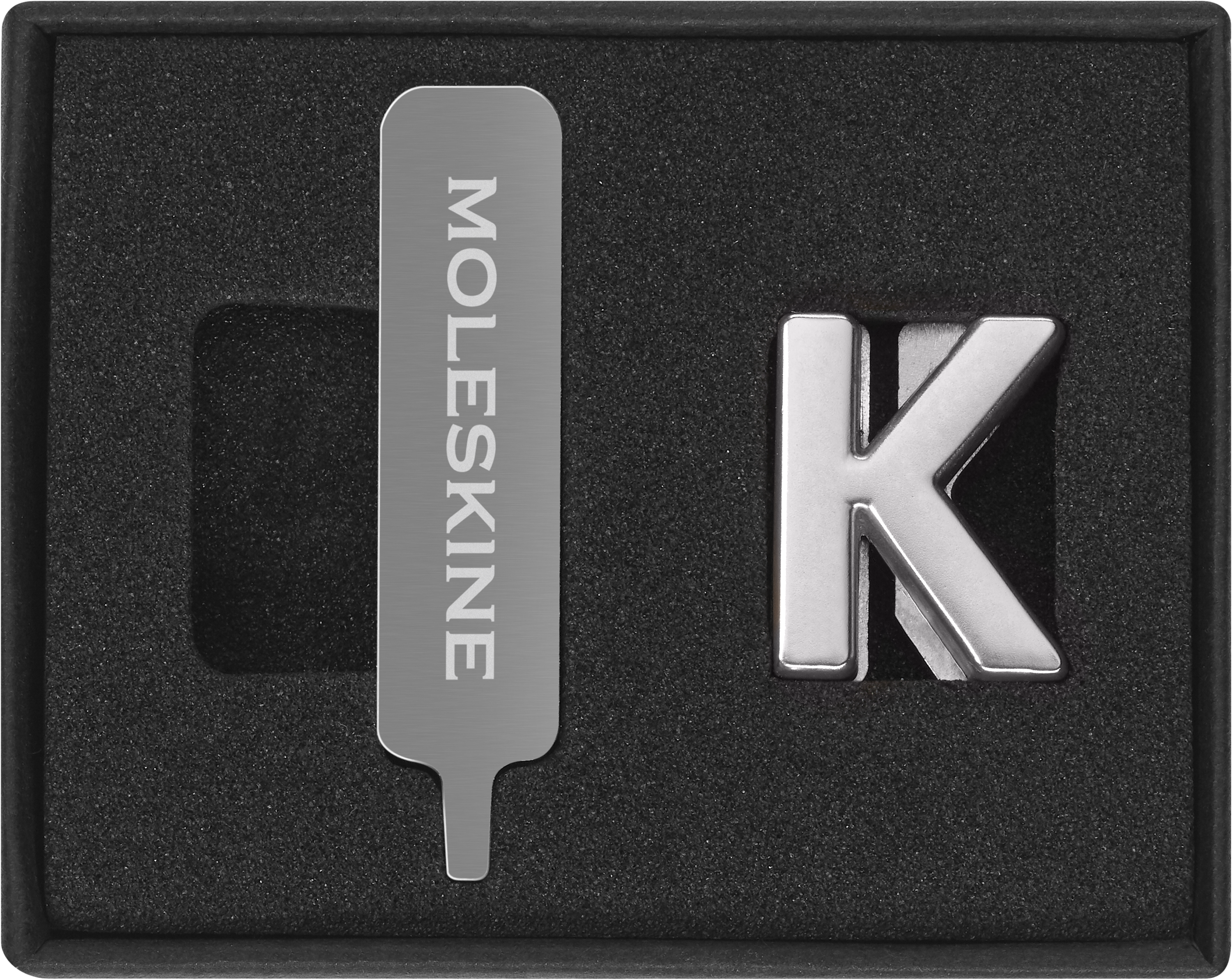 Srebrna przypinka Moleskine do notatnika kalendarza litera K