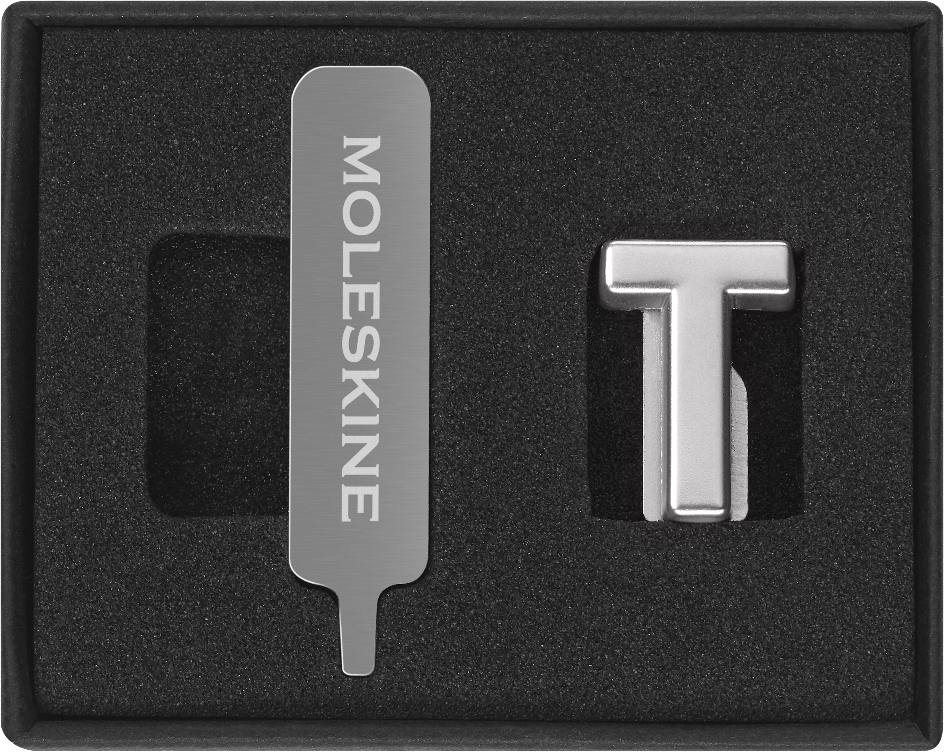 Srebrna przypinka Moleskine do notatnika kalendarza litera T