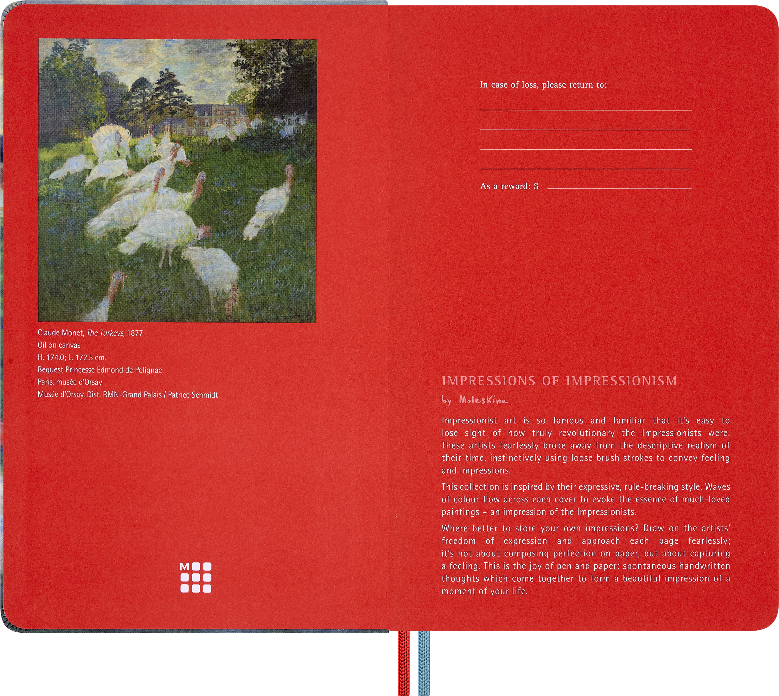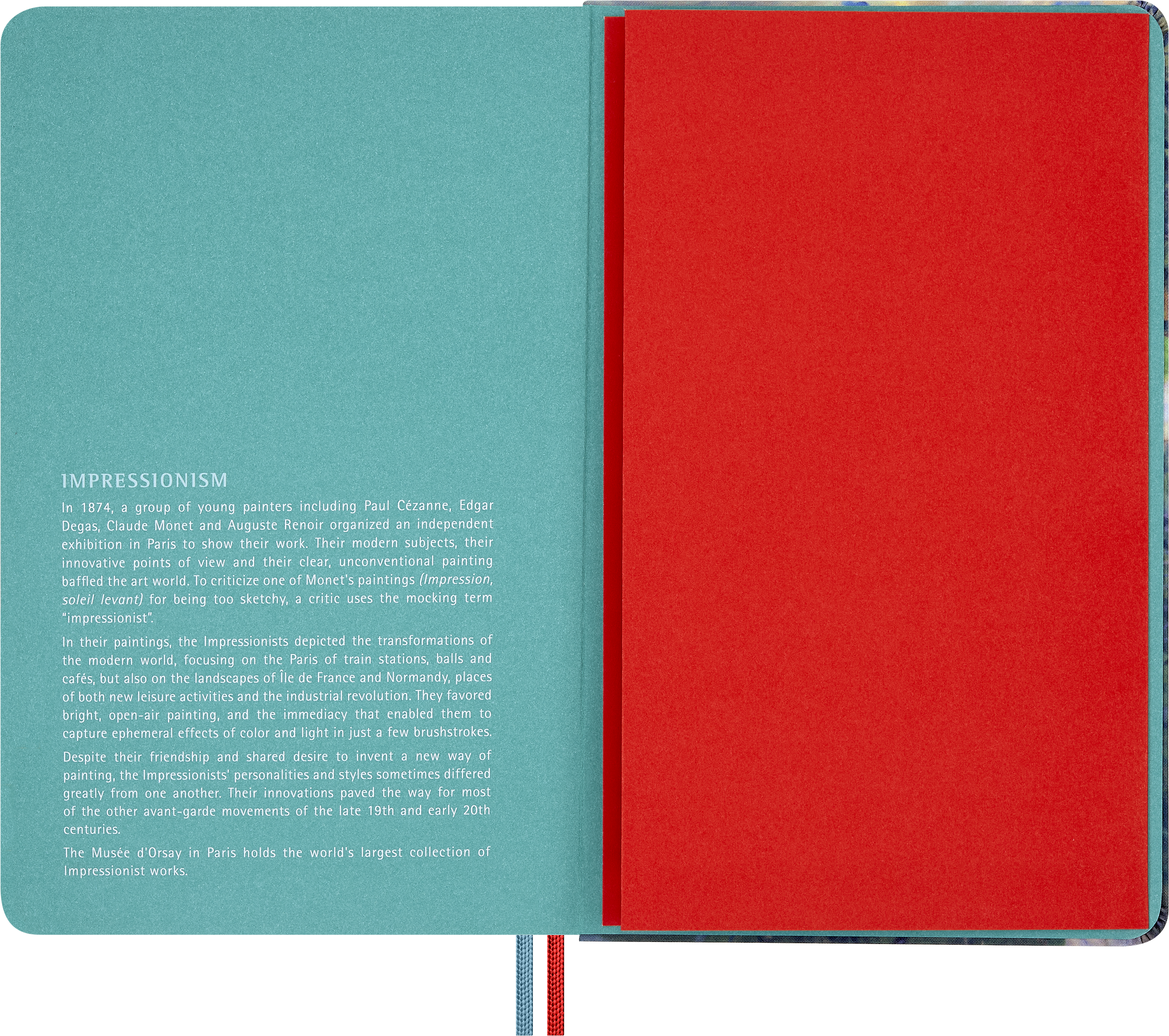 Kolekcja Impressionism od Moleskine czerpie inspirację z ich śmiałości i artystycznej swobody. Dynamiczne barwy zdobią każdą okładkę, oferując świeżą interpretację ponadczasowych arcydzieł – impresję impresjonizmu.