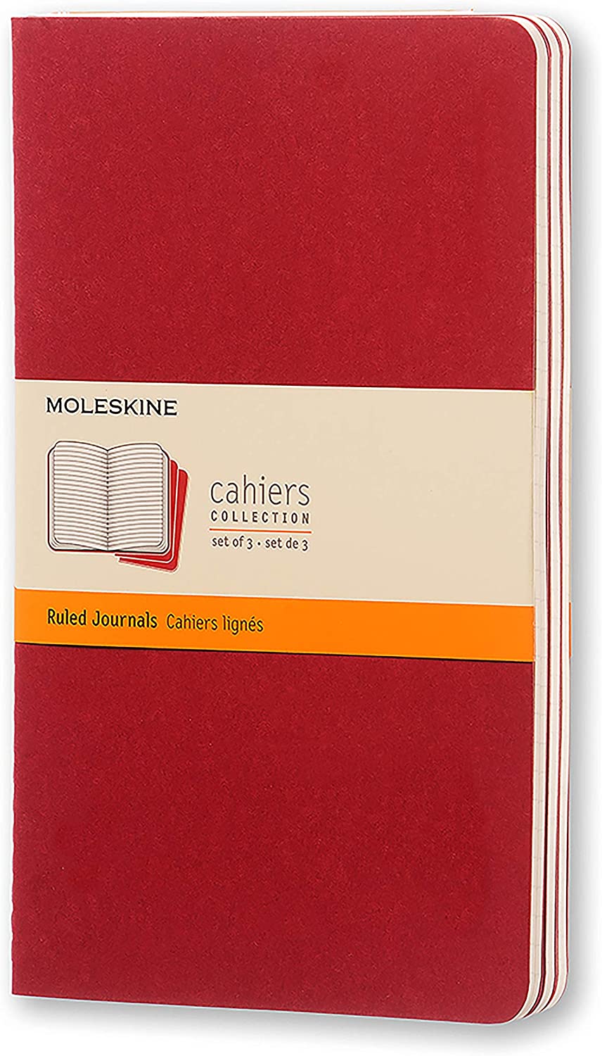 Zestaw 3 Zeszytów Moleskine Cahier Journals L (13x21cm) w linie, cranberry red, 80 stron