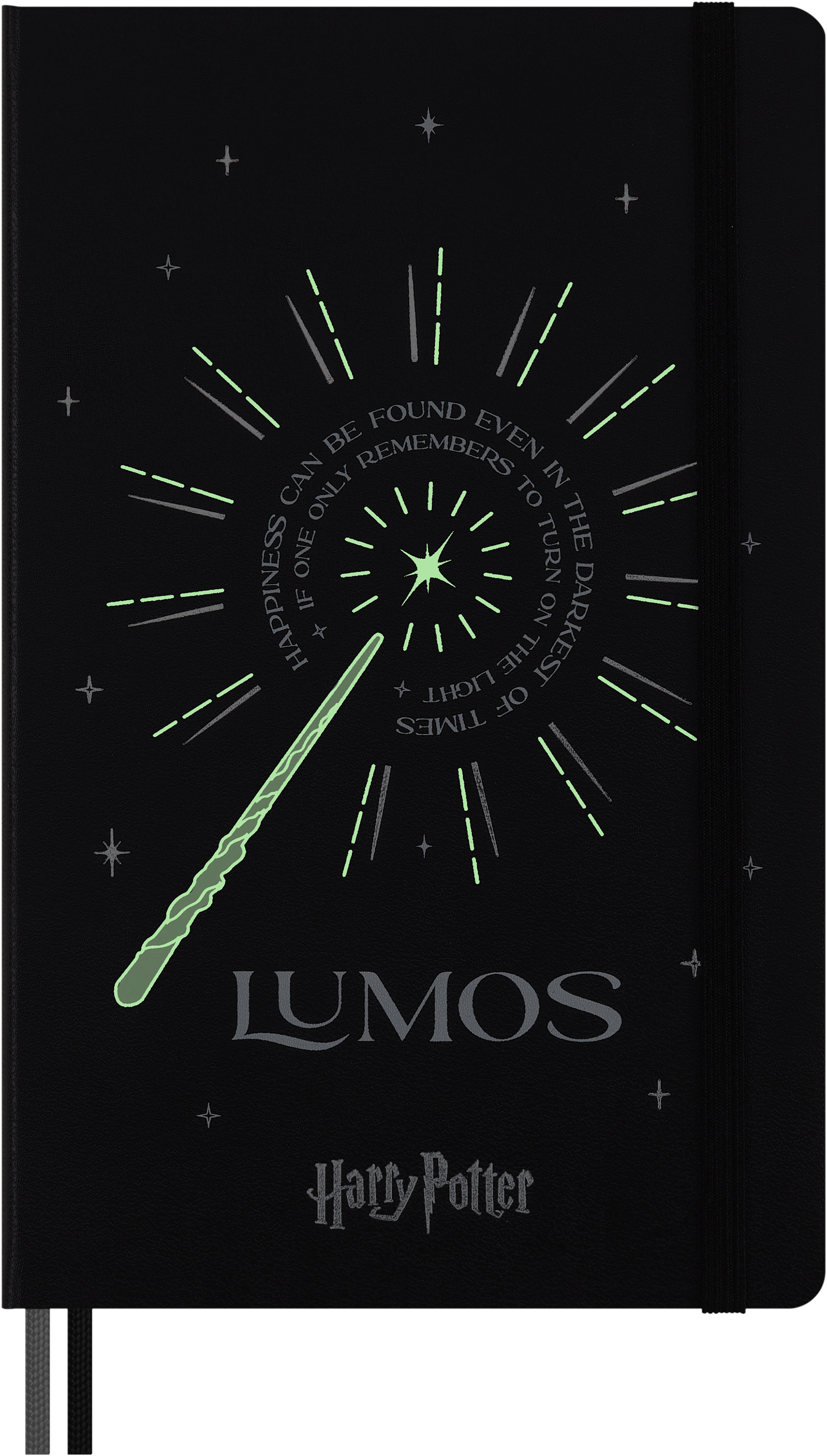 Lumos: najprostszy z amuletów, który jednak rozświetla nawet najciemniejsze chwile. Rozwiń swoją kreatywność na stronach tego notesu w linie w formie odręcznych pomysłów, przemyśleń, planów i notatek. Ta limitowana edycja Harry'ego Pottera ma specjalną świecącą w ciemności okładkę i zawiera dwie wstążki z zakładkami oraz poruszający cytat z historii. Na kilku stronach w kolorze kości słoniowej znajdują się ilustracje w formie flipbooków z motywem Lumos, a wyklejki umożliwiają odświeżenie gestów różdżki za pomocą ulubionego pióra.